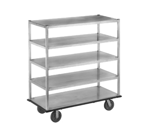 Banquet / Utility Cart, Queen Mary, 62"W x 28"D x 66"H, Aluminum Construction, 13.5" Shelf Spacing, (5) shelves, (2) 8" Plate Swivel and (2) 8" Plate Rigid Casters model #'s CPS28U & CPR28U, Made in USA, 180lbs. (ITEM WEIGHT ONLY), raised marine edge, full perimeter bumper, weight does not include 50 lbs. for pallet weight