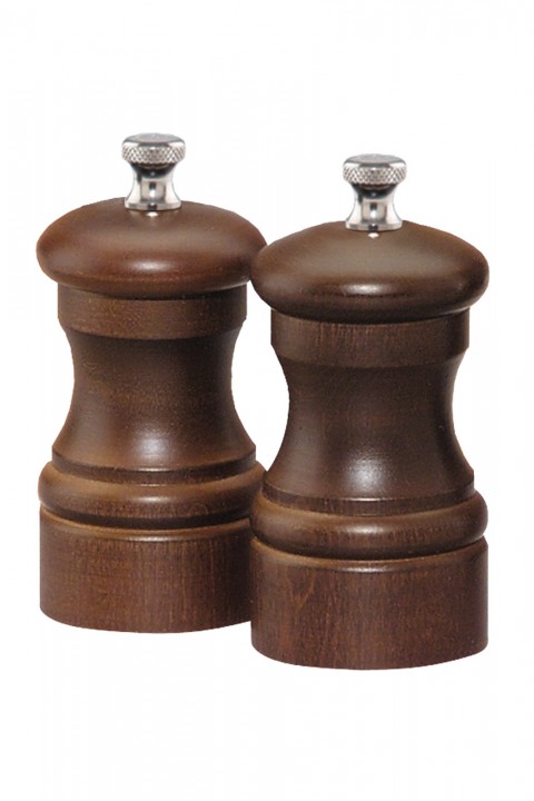 (041020) Chef Professional Series Capstan Salt Mill/Pepper Mill Set, 4" high, walnut finish, stainless steel pepper grinder, ceramic salt grinding mechanism, Made in USA, lifetime warranty