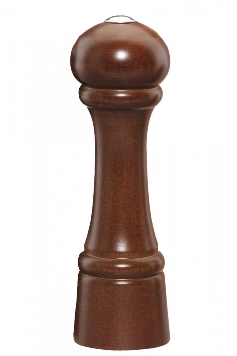 (081552) Chef Professional Series Windsor Salt/Pepper Shaker, 8" high, wood, rubber plug, stainless steel shaker cap, Made in USA, lifetime warranty, walnut finish