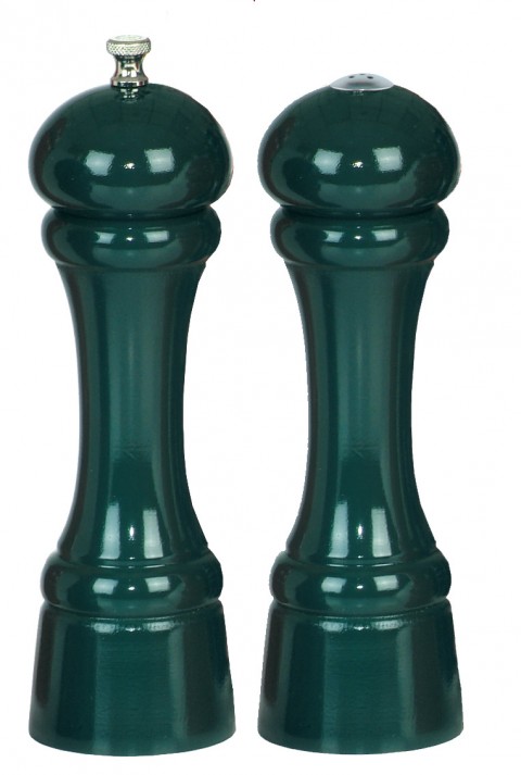 (088001) Autumn Hues Professional Pepper Mill & Salt Shaker Set, 8" high, wood, tempered stainless steel gear, Made in USA, lifetime warranty, forest green