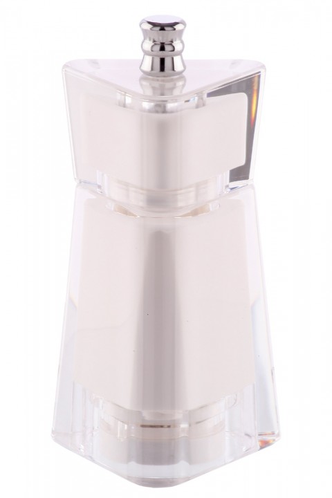 (294518) Chef Home Cookin' Series Kate Salt Mill, 4-1/2" high, includes (2) etched top knobs (S & P), anodized aluminum shaft with ceramic grinding mechanism, acrylic housing, white, lifetime warranty