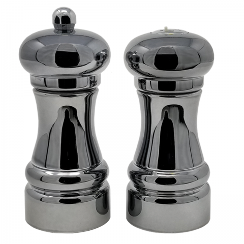(900402) Chef Home Cookin' Series Pepper Mill/Salt Shaker Set, 4" high, 4-grade adjustable ceramic grinding mechanism, lifetime warranty, acrylic with midnight chrome finish