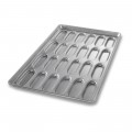 Hot Dog Bun Pan, 16-3/4" x 27-3/4" x 1-5/8" overall, (24) 6" x 2-1/16" compartments, wire in rim, hand wash recommended, 22 gauge aluminized steel, AMERICOAT® ePlus silicone glaze, PFOA free, made in the USA with global materials