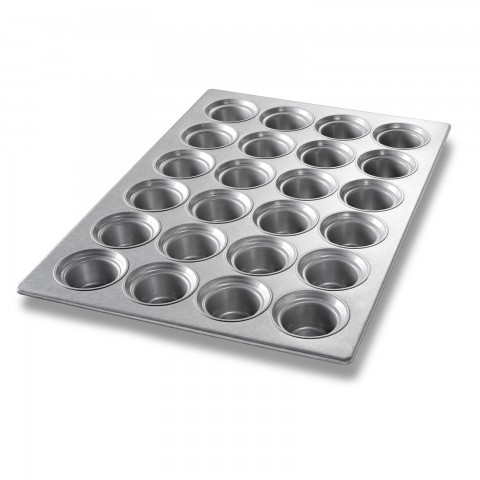 Large Crown Muffin Pan, 17-7/8" x 25-7/8" overall, makes (24) 3-5/8" dia. muffins, 7.3 oz. capacity each, wire in rim, hand wash recommended, 22 gauge aluminized steel, AMERICOAT® ePlus silicone glaze, PFOA free, made in the USA with global materials