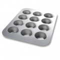 Cupcake Pan, 11-1/8" x 15-3/4" overall, makes (12) 2-3/4" dia. cupcakes, 3.8 oz. capacity each, curled rim, hand wash recommended, 26 gauge cups/22 gauge panel, aluminized steel, AMERICOAT® ePlus silicone glaze, PFOA Free, made in the USA with global materials