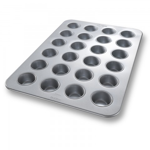 Cupcake Pan, 17-7/8" x 25-7/8" overall, makes (24) 2-3/4" dia. cupcakes, 3.8 oz. capacity each, wire in rim, hand wash recommended, 26 gauge aluminized steel, AMERICOAT® ePlus silicone glaze, PFOA Free, made in the USA with global materials