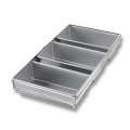 Bread Pan Set, 3-pan, 9-23/32" x 17-3/4" x 2-3/4" overall, (3) 9" x 4-1/2" strapped pans, folded construction, wire in rim, band over wire, hand wash recommended, 26 gauge aluminized steel, AMERICOAT® ePlus silicone glaze, PFOA Free, made in the USA with global materials
