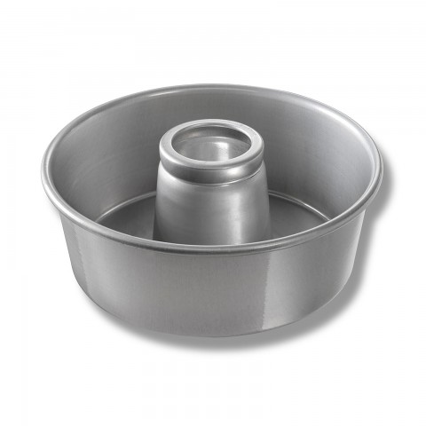 Angel Food/Tube Cake Pan, 144 oz., 10" dia. x 3-3/4" deep, nesting ring in tube, solid bottom, 15 gauge aluminum, plain, made in the USA with global materials
