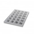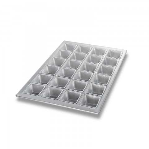 Muffin Pan, 14-1/8" x 20-3/4" overall, makes (24) 2-5/8" square muffins, 4.4 oz. capacity each, wire in rim, hand wash recommended, 20 gauge aluminized steel, AMERICOAT® ePlus silicone glaze, PFOA Free, made in the USA with global materials