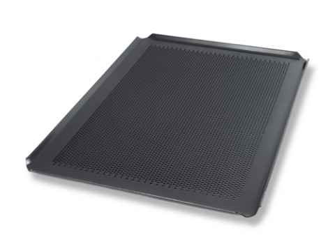 BĀKALON Sheet Pan, non-traditional size, 12-3/4" x 18-3/8" x 1/3", .063" diameter bottom perforation, 14 gauge hardcoat anodized aluminum, pre-seasoned, made in the USA with global materials