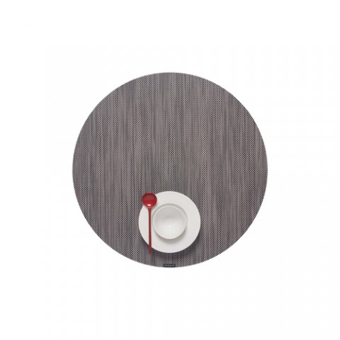 Mini Basketweave Table Mat, 15" dia., Round, Light grey, Microban® antimicrobial protection, TerraStrand™ woven vinyl, Made in USA (minimum order 4 each)