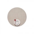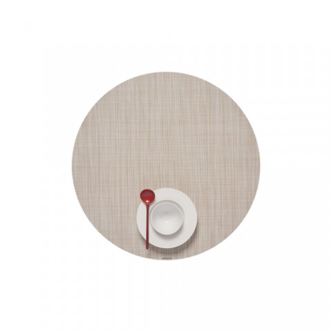Mini Basketweave Table Mat, 15" dia., Round, Parchment, Microban® antimicrobial protection, TerraStrand™ woven vinyl, Made in USA (minimum order 4 each)