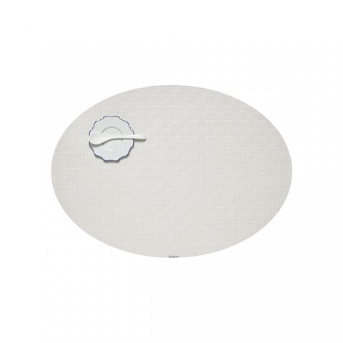 Bay Weave Table Mat, 14" x 19-1/4", Oval, Vanilla, Microban® antimicrobial protection, TerraStrand™ woven vinyl, Made in USA (minimum order 4 each)
