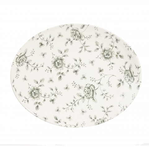 Plate, 12-1/2" x 10", oval, coupe, microwave & dishwasher safe, ceramic, eco glazed finish, Gray Rose Chintz, Churchill® Super Vit, Vintage Prints (US Stocked Item) (6 each per case) (order per case only)