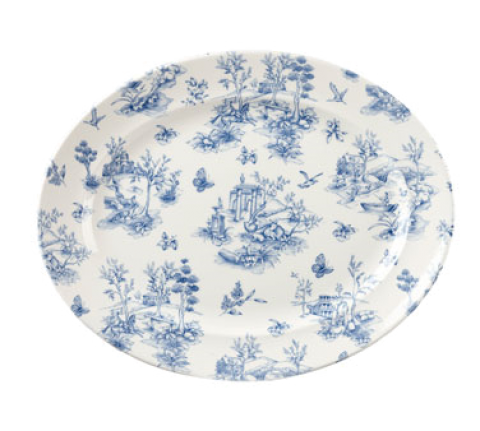 Platter/Dish, 14-3/8" x 11-1/2", oval, classic rim, rolled edge, microwave & dishwasher safe, glazed finish, Toile Prague, Churchill® Super Vit, Vintage Prints (US Stocked Item) (6 each per case) (order per case only)