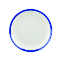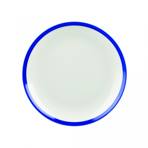 Plate, 6-1/2" dia., round, coupe, rolled edge, microwave & dishwasher safe, ceramic, eco glazed finish, Churchill® Super Vit, Retro Blue, White with blue rim (Canada Stocked Item)