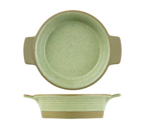 Au Gratin Dish, 6-3/5 oz., 4-3/4" dia., round, eared handles, single serve, biscuit edge, embossed line, heat & shock resistance, freezer, microwave & dishwasher safe, glazed finish, stoneware, vitrified, terracotta, Art de Cuisine® Igneous (UK Stocked Item) (6 each per case)(order per case only)
