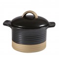 Cocotte, 12-3/10 oz., 5-1/2" x 2-3/4", round, with lid/handles, embossed line, heat & shock resistance, freezer, microwave & dishwasher safe, glazed finish, stoneware, vitrified, porcelain, Art de Cuisine®, Igneous, Black Igneous (UK Stocked Item) (6 each per case)(order per case only)
