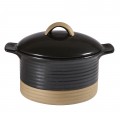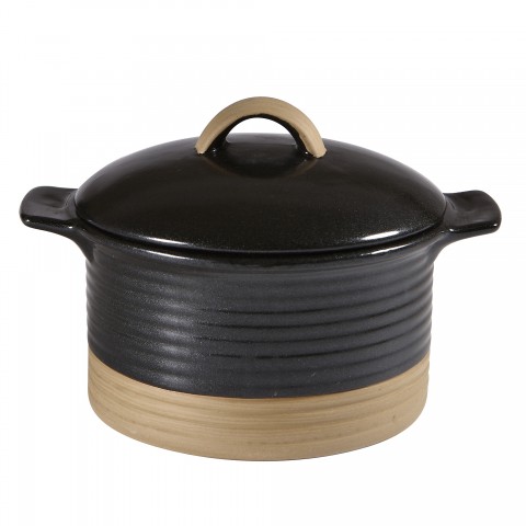 Cocotte, 18-3/5 oz., 6-1/4" x 2-3/4", round, with lid/handles, embossed line, heat & shock resistance, freezer, microwave & dishwasher safe, glazed finish, stoneware, vitrified, porcelain, Art de Cuisine®, Igneous, Black Igneous (UK Stocked Item) (6 each per case)(order per case only)