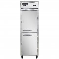 Refrigerator/Freezer, reach-in, one-section, 10 cu ft. refrigerator/10 cu. ft. freezer, self-contained refrigeration, stainless steel exterior & interior, standard depth, (2) half-height solid self-closing doors, cylinder locks, electronic control with digital display, freezer can be adjusted to operate as low as -10°F, hi-low alarm, LED interior lighting, (4) epoxy-coated steel shelves, electric condensate evaporator, R290 Hydrocarbon refrigerant, dual 1/5 & 1/3 HP, cETLus, NSF