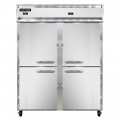 Extra-Wide Refrigerator/Freezer, reach-in, 57"W, two-section, self-contained refrigeration, stainless steel exterior & aluminum interior, standard depth, (4) half-height solid self-closing doors, cylinder locks, electronic control with digital display, freezer can be adjusted to operate as low as -10°F, hi-low alarm, LED interior lighting, (6) epoxy-coated steel shelves, electric condensate evaporator, R290 Hydrocarbon refrigerant, dual 1/4 & 1/2 HP, cETLus, NSF