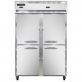 Refrigerator/Freezer, reach-in, two-section, self-contained refrigeration, stainless steel exterior, aluminum interior, standard depth, (4) half-height solid self-closing doors, cylinder locks, electronic control with digital display, freezer can be adjusted to operate as low as -10°F, hi-low alarm, LED interior lighting, (6) epoxy-coated steel shelves, electric condensate evaporator, R290 Hydrocarbon refrigerant, dual 1/4 & 1/2 HP, cETLus, NSF