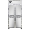 Slim Line Refrigerator, reach-in, 36-1/4"W, two-section, self-contained refrigeration, shallow depth, stainless steel front, aluminum interior & ends, half-height solid doors, cylinder locks, electronic control with digital display, hi-low alarm, R290 hydrocarbon refrigerant, 1/3 HP, cETLus, NSF