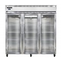 Refrigerator, reach-in display, three-section, self-contained refrigeration, stainless steel exterior & interior, standard depth, narrow hinged glass doors, cylinder locks, with electronic control with digital display, hi-low alarm, unit comes standard with electric condensate evaporator, R290 Hydrocarbon refrigerant, 1/2 HP, cETLus, NSF