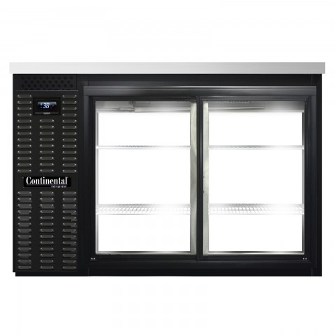 Refrigerated Back Bar Cooler, pass-thru, 50"W, 34-3/4"H, 16.0 cubic feet, front breathing, stainless steel top, sliding glass doors, electronic controller with digital display & hi-low alarm, black enamel finish exterior, stainless steel interior back & side panels with reinforced stainless steel floor, epoxy coated steel shelves, self-contained refrigeration, R290 hydrocarbon refrigerant, 1/4 HP, cETLus, NSF