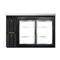 Refrigerated Back Bar Cooler, Shallow Depth, pass-thru, 50"W, 34-3/4"H, 13.0 cubic feet, front breathing, stainless steel top, sliding glass doors, electronic controller with digital display & hi-low alarm, black enamel finish exterior, stainless steel interior back & side panels with reinforced stainless steel floor, epoxy coated steel shelves, self-contained refrigeration, R290 hydrocarbon refrigerant, 1/4 HP, cETLus, NSF