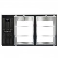 Refrigerated Back Bar Cooler, pass-thru, 59"W, 34-3/4"H, 22.0 cubic feet, front breathing, stainless steel top, (4) glass doors with locks, electronic controller with digital display & hi-low alarm, black enamel finish exterior, stainless steel interior back & side panels with reinforced stainless steel floor, epoxy coated steel shelves, self-contained refrigeration, R290 hydrocarbon refrigerant, 1/4 HP, cETLus, NSF