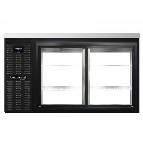 Refrigerated Back Bar Cooler, pass-thru, 59"W, 34-3/4"H, 22.0 cubic feet, front breathing, stainless steel top, sliding glass doors, electronic controller with digital display & hi-low alarm, black enamel finish exterior, stainless steel interior back & side panels with reinforced stainless steel floor, epoxy coated steel shelves, self-contained refrigeration, R290 hydrocarbon refrigerant, 1/4 HP, cETLus, NSF