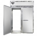 Designer Line Freezer, roll-thru, two-section, self-contained refrigeration, stainless steel front, aluminum interior & ends, standard depth cabinet, full-height solid doors, cylinder locks, electronic control with digital display, hi-low alarm, removable stainless steel ramps, R290 hydrocarbon refrigerant, 1-1/4 HP, cETLus, NSF