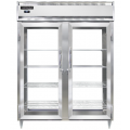 Designer Line Wide Refrigerator, 52 cu. ft. capacity, pass-thru, 57" wide two-section, self-contained refrigeration, standard depth cabinet, electronic controller with digital display, wide full-height glass doors on front and rear, stainless steel exterior & interior, 6" stainless steel legs, NEMA-5-15P, 1/2 HP, cETLus, NSF, Made in the USA