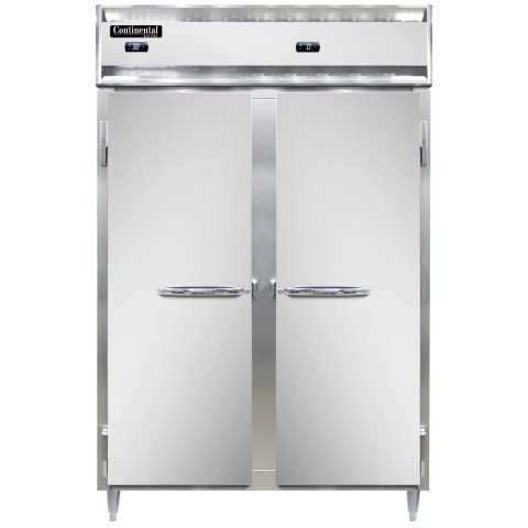 Designer Line Refrigerator/Freezer, pass-thru, two-section, self-contained refrigeration, stainless steel exterior, aluminum interior, standard depth cabinet, narrow full-height solid doors, cylinder locks, electronic control with digital display, hi-low alarm, R290 Hydrocarbon refrigerant, dual 1/4 & 1/2 HP compressors, cETLus, NSF