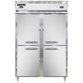 Designer Line Refrigerator/Freezer, reach-in, two-section, self-contained refrigeration, stainless steel exterior & interior, shallow depth cabinet, narrow half-height solid doors, cylinder locks, electronic control with digital display, hi-low alarm, R290 Hydrocarbon refrigerant, dual 1/4 & 1/2 HP compressors, cETLus, NSF