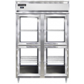 Designer Line Refrigerator, 50 cu. ft. capacity, pass-thru, two-section, self-contained refrigeration, standard depth cabinet, electronic controller with digital display, half-height glass doors on front and rear, stainless steel exterior, aluminum interior, stainless steel front, 6" stainless steel legs, NEMA-5-15P, 1/2 HP, cETLus, NSF, Made in the USA
