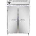 Designer Line Refrigerator, 50 cu. ft. capacity, pass-thru, two-section, self-contained refrigeration, standard depth cabinet, electronic controller with digital display, full-height stainless steel doors on front, full-height glass doors on rear, stainless steel exterior & interior, 6" stainless steel legs, NEMA-5-15P, 1/2 HP, cETLus, NSF, Made in the USA