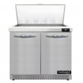Designer Line Mighty Top Sandwich Unit, Front Breather, 36"W, two-section, (15) 1/6 size x 4" deep pans with 8" cutting board, (2) field rehingeable doors, stainless steel top, front, sides & interior, electronic control with digital display, hi-low alarm, 3-3/4" casters, rear mounted self-contained refrigeration, automatic hot gas condensate evaporator, R290 hydrocarbon refrigerant, 1/5 HP, cETLus, NSF