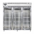 Designer Line Refrigerator, reach-in, three-section, self-contained refrigeration, stainless steel exterior, aluminum interior, standard depth cabinet, full-height glass doors, cylinder locks, electronic control with digital display, hi-low alarm, 6" stainless steel legs, R290 Hydrocarbon refrigerant, 1/2 HP, cETLus, NSF