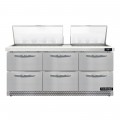 Designer Line Mighty Top Sandwich Unit, Front Breather, 72"W, three-section, (27) 1/6 size x 4" deep pans with 8" cutting board, (6) drawers, accommodates (1) 12 x 18 x 6 pan per drawer or (1) 1/2 x 6 pan & (1) 1/3 x 6 pans per drawer capacity (supplied by others), stainless steel top, front, sides & interior, electronic control with digital display, hi-low alarm, 3-3/4" casters, rear mounted self-contained refrigeration, automatic hot gas condensate evaporator, R290 hydrocarbon refrigerant, 1/3 HP, cETLus, NSF