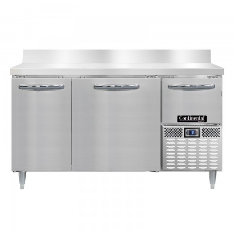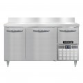 Designer Line Freezer Base Worktop Unit, 60"W, reinforced stainless steel work top with 5-1/2"H backsplash, stainless steel exterior, front, sides & interior, (2) full & (1) half height field rehingeable doors, 6" adjustable stainless steel legs, electronic control with digital display, hi-low alarm, R290 hydrocarbon refrigerant, 1/2 HP, side-mounted refrigeration, cETLus, NSF