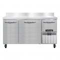 Freezer Base Worktop Unit, 60"W, 300 series stainless steel work top with 6"H backsplash, stainless steel front & end panels, galvanized steel rear & grill, aluminum interior, (2) full & (1) half height field rehingeable doors, electronic control, off-cycle defrost, 1/2 HP, R290 hydrocarbon refrigerant, side-mounted refrigeration, cETLus, NSF