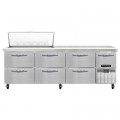 Refrigerated Base Sandwich Unit, 93"W, 300 series stainless steel (Mighty) top with (18) 1/6 size x 4" deep pans, stainless steel front & sides, galvanized steel case back, aluminum interior, 10" deep nylon cutting board, (6) drawers - top drawers hold (1) 12" x 20" + (3) 1/6 pans each & Bottom drawers holds (2) 12" x 20" pans each, (1) half height field rehingeable door, electronic control, off cycle defrost, hot gas condensate evaporator, 1/3 HP, side-mounted refrigeration, R290 Hydrocarbon refrigerant, cETLus, NSF