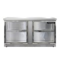 Work Top Display Refrigerator, Front Breather, 60"W, 17.0 cu ft capacity, two-section, stainless steel flat top, (2) glass door, LED interior lighting, stainless steel front & end panels, aluminum interior, 3-3/4" casters, rear mounted self-contained refrigeration, R290 Hydrocarbon refrigerant, 1/5 HP, cETLus, NSF