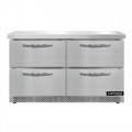 Work Top Freezer, Front Breather, 48"W, 13.4 cu ft capacity, two-section, stainless steel flat top, (4) drawers, accommodates (1) 12 x 18 x 6 pan per drawer or (1) 1/2 x 6 pan & (1) 1/3 x 6 pans per drawer capacity (supplied by others), stainless steel front & end panels, aluminum interior, 3-3/4" casters, rear mounted self-contained refrigeration, R290 Hydrocarbon refrigerant, 1/2 HP, cETLus, NSF