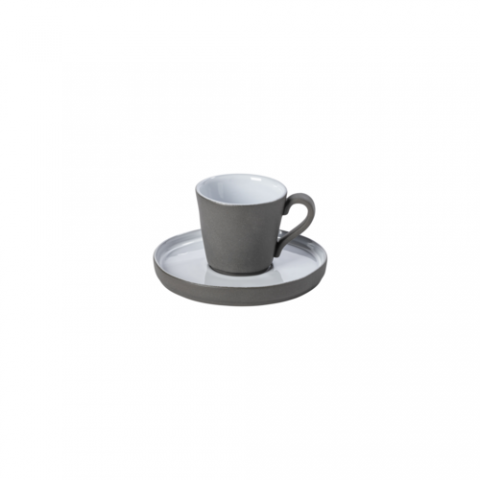 Coffee Cup And Saucer, 4-7/8"W x 2-1/2"H, 2-7/8 fl oz, microwave safe, dishwasher safe, freezer safe, ecogres slate, Lagoa Ecogres, white, (minimum = case quantity) (6 per case) (SETS UNAVAILABLE - Must order individual components: 1LOC092-WHI - 1LOC131-WHI)