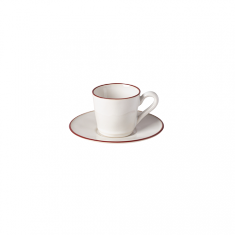 Tea Cup And Saucer, 6-5/8"W x 3"H, 6-1/4 fl oz, oven safe, microwave safe, dishwasher safe, freezer safe, fine stoneware, Beja, white & red, (minimum = case quantity) (6 per case) (SETS UNAVAILABLE - Must order individual components: ATC122-RED - ATP172-RED)