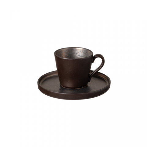 Tea Cup And Saucer, 6-3/8"W x 3-1/8"H, 6-1/4 fl oz, oven safe, microwave safe, dishwasher safe, freezer safe, fine stoneware, Lagoa, metal, (minimum = case quantity) (6 per case) (SETS UNAVAILABLE - Must order individual components: LOC112-MTL - LOP162-MTL)