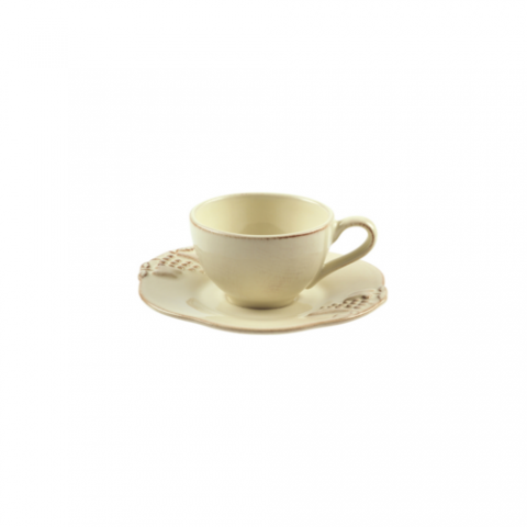 Coffee Cup And Saucer, 3 "W x 1 7/8"D x 1 7/8"H, 3 fl oz, oven safe, microwave safe, dishwasher safe, freezer safe, fine stoneware, madeira harvest, vanilla crème, (minimum = case quantity) (6 per case) (SETS UNAVAILABLE - Must order individual components: MC092-CRM - MP131-CRM)